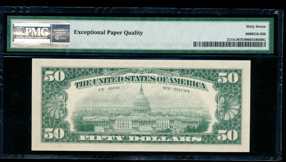 Fr. 2104-J 1934B $50 Federal Reserve Note Kansas City PMG 65EPQ J01373637A