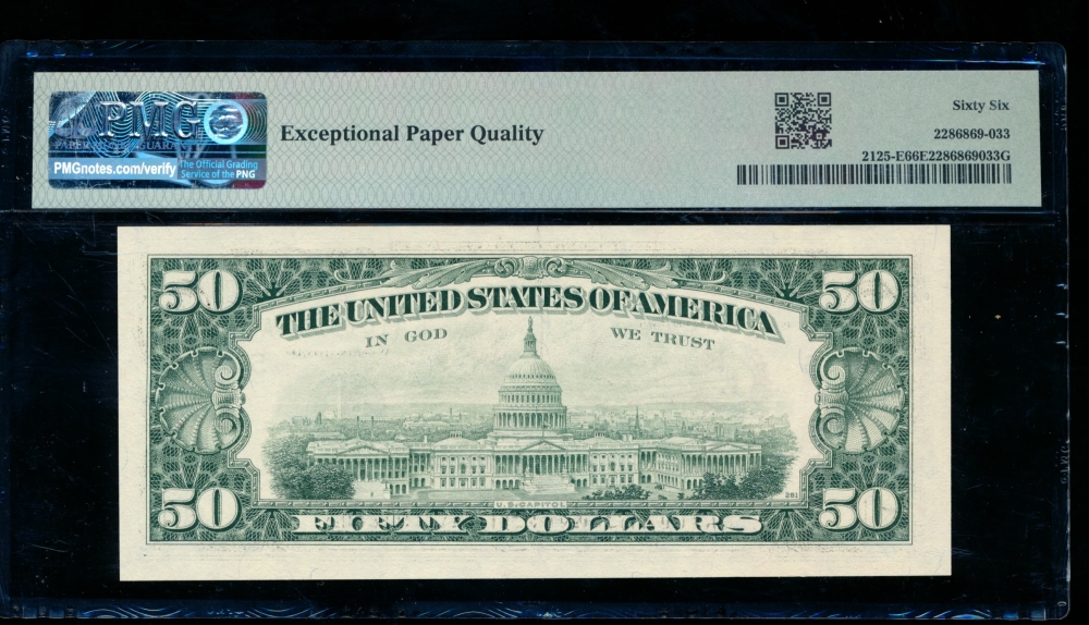 Fr. 2114-J 1969 $50 Federal Reserve Note Kansas City PMG 66EPQ J00293519A