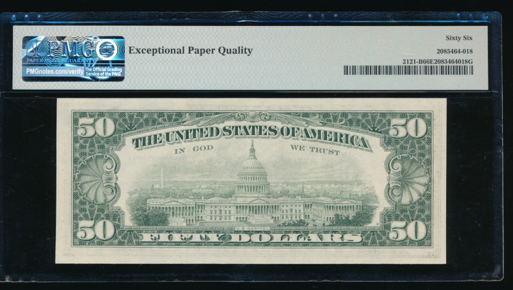 Fr. 2114-J 1969 $50 Federal Reserve Note Kansas City PMG 66EPQ J00293516A