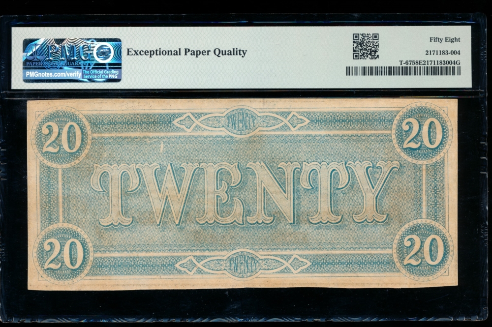 Fr. T-67 1864 $20 Confederate PMG 55EPQ 19603