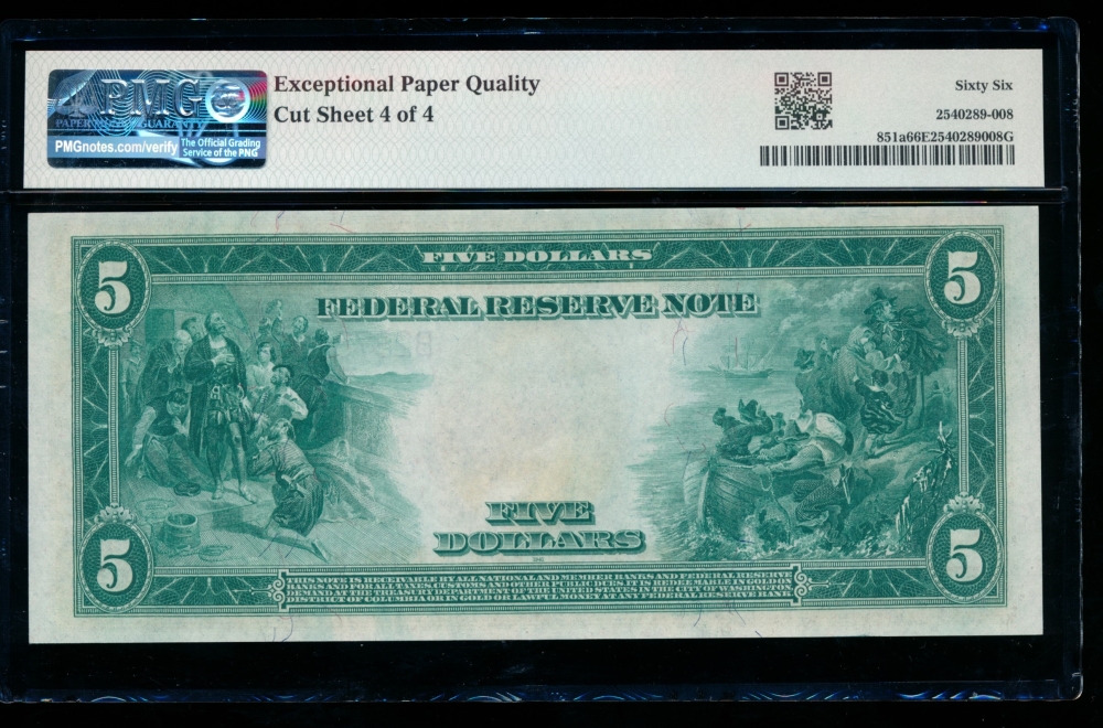 Fr. 834b 1914 $5 Federal Reserve Note Philadelphia red seal PMG 40 C2712154A