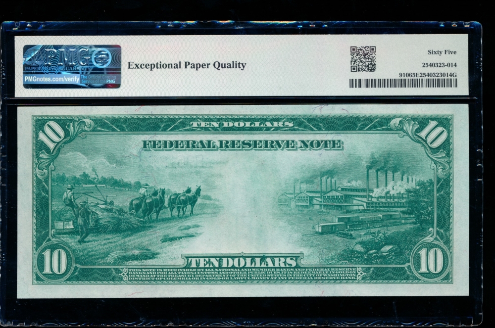 Fr. 911a 1914 $10 Federal Reserve Note New York PMG 66EPQ B10436471B
