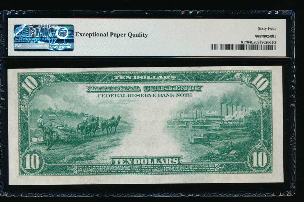 Fr. 814 1918 $10 FRBN Chicago PMG 20NET G161403A