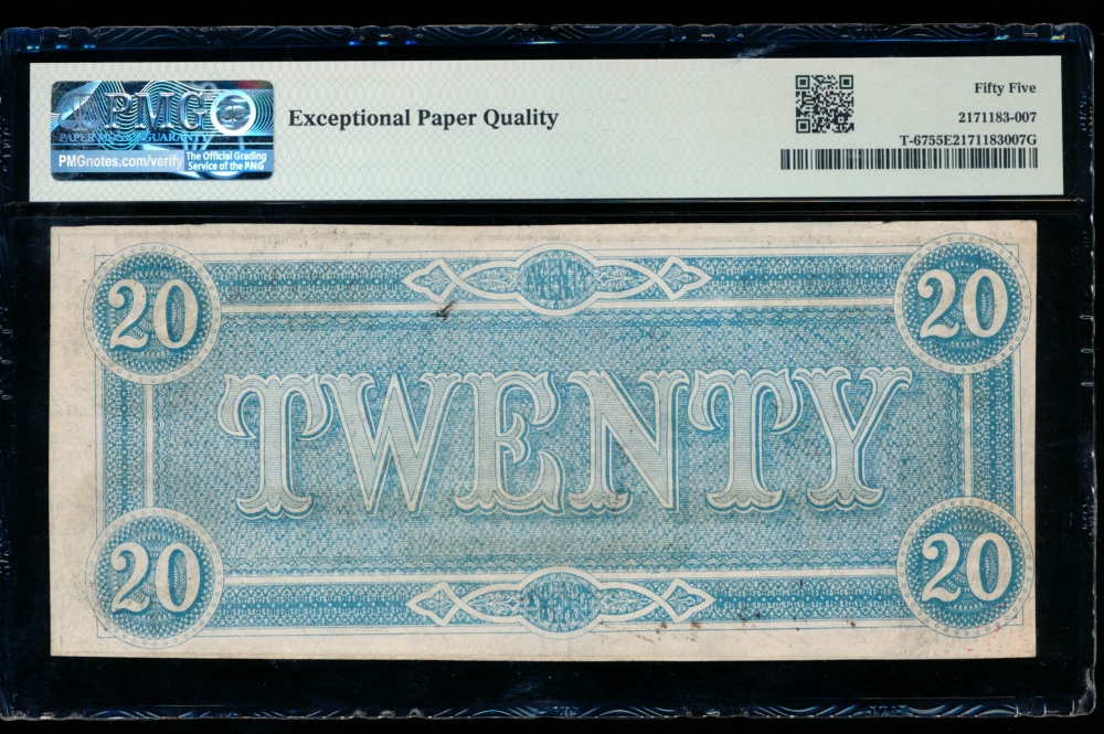 Fr. T-67 1864 $20 Confederate PMG 58EPQ 5249