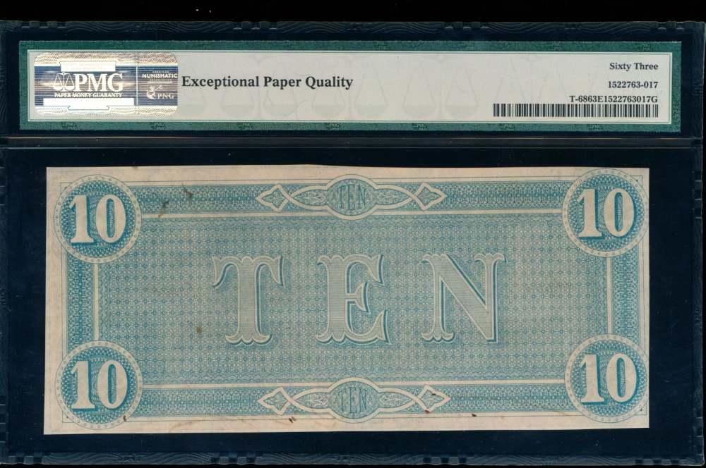 Fr. T-68 1864 $10 Confederate PMG 64EPQ 66477