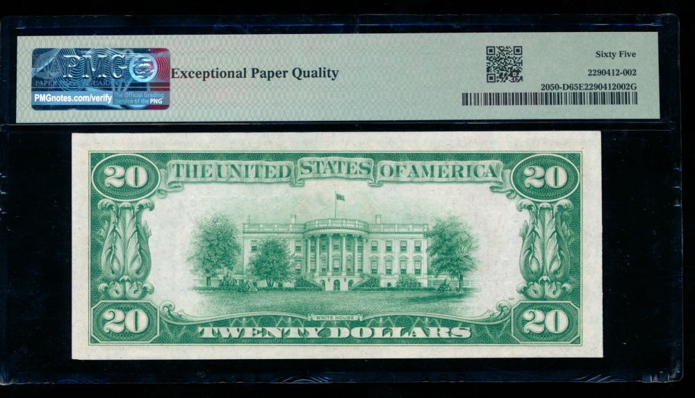 Fr. 2058-B 1934D $20 Federal Reserve Note Wide, BB block PMG 66EPQ B56739682B