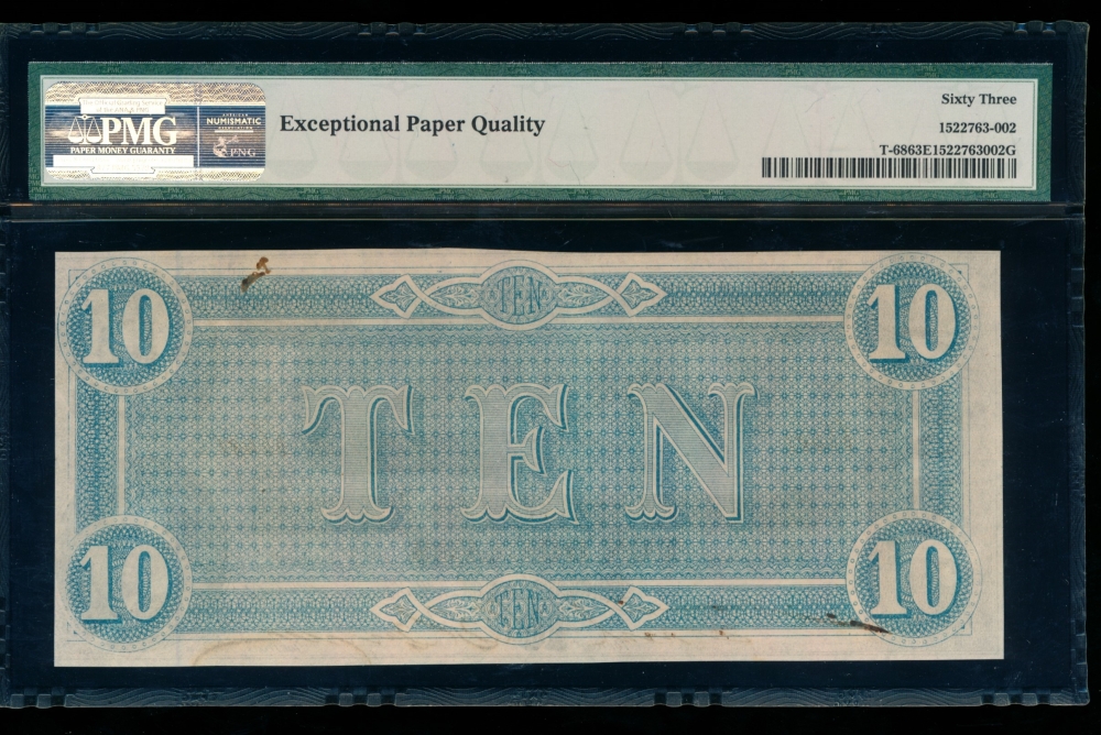 Fr. T-68 1864 $10 Confederate PMG 64EPQ 66488