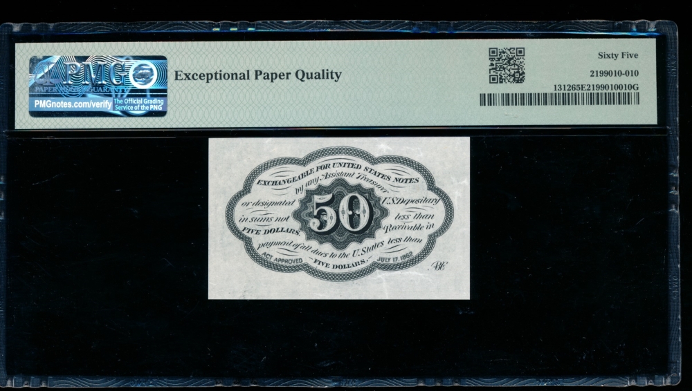 Fr. 1312 $0.50 Fractional First Issue: Straight Edges With Monogram PMG 65EPQ no serial number